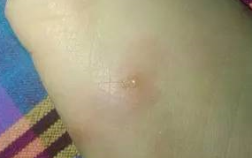 丘疹性荨麻疹一开始的时候也是以风团为主,但是他24小时不消退。特点是中间有一个叮口,两三天以后变成一个带尖的丘疹,然后可能起一个水泡,它的原因是蚊虫叮咬引起的,分布的特点是成堆分布,或是线状排列。