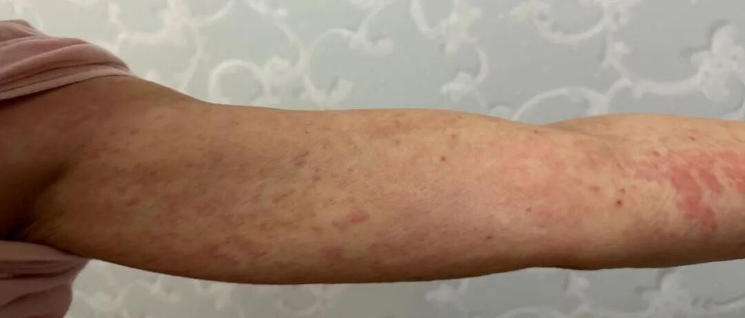 就这样,按照这个方子服用了10天,大姐说,她基本好了,只剩当初最严重的手肘窝和右腿腘窝还各有一块皮疹外,身上其他地方都好了。