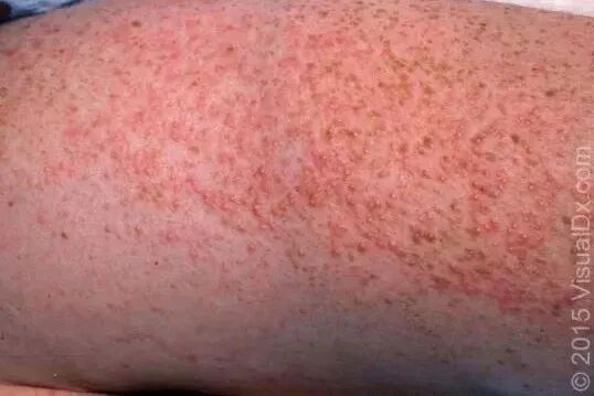 第3天退热,开始出现咳嗽、咳痰、虚弱等常见症状。但躯干和四肢,都出现了红斑、丘疹,还伴有瘙痒,她很纳闷皮肤怎么也有症状。