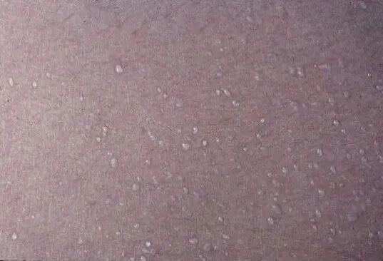 疫情下消毒剂应用十分广泛,消毒剂引起的特殊皮肤反应已受到皮肤科医生的关注,比如苯扎氯铵引起的颗粒状角化不全,如下图所示。