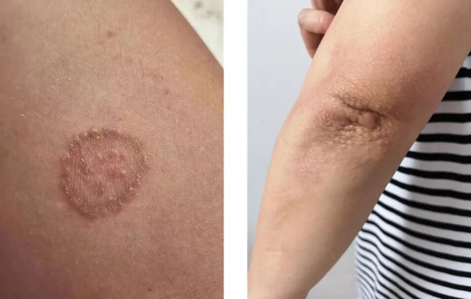 由于部分皮肤病具有特殊的部位或分布,因此照片最好能够直观的显示皮损所在部位,并尽可能完整的展示其分布范围。例如,下面两张照片都是手臂处皮损,但左侧照片过于局部。有时皮损可以散发于全身各处,则有多张照片为佳。但个别典型的皮损,则可以拍摄清晰的局部照片向医生展示。