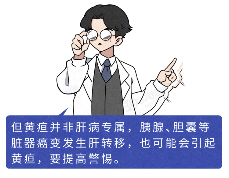 黄疸是肝脏病变的典型症状,成年人如出现黄疸,基本都与肝脏有关,肝癌便是其中之一。肝功能代谢异常,导致胆红素代谢障碍,血红素积累在血液,就会导致皮肤色素沉淀,从而引起全身皮肤变黄。