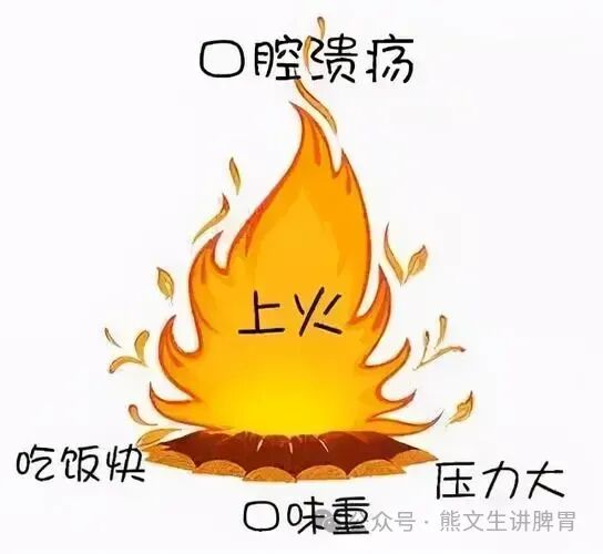 这可能引发一系列脾胃问题,如口干舌燥、口唇溃疡、食欲不振、大便秘结等症状。