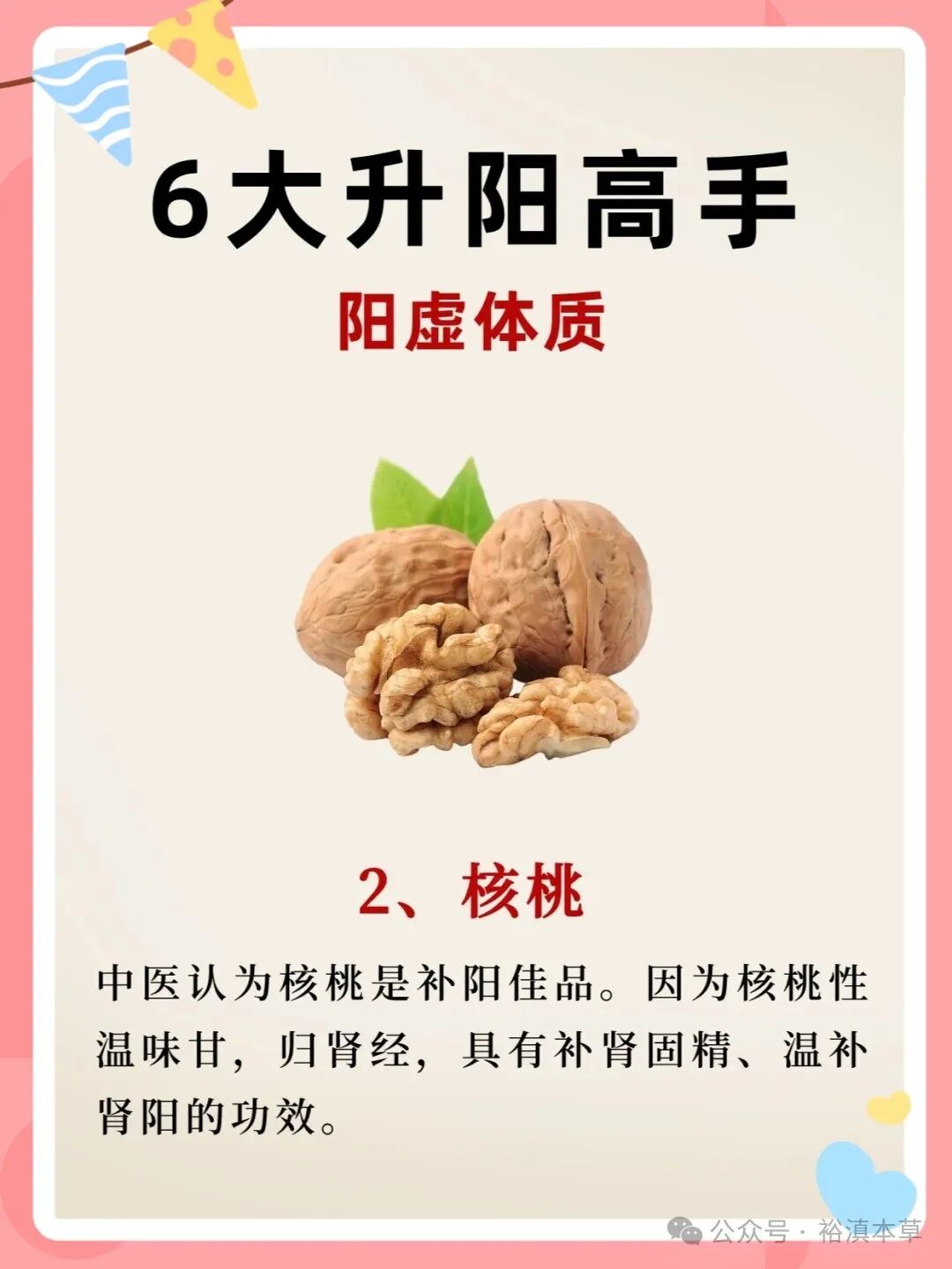 中医认为核桃是补阳佳品。因为核桃性温味甘,归肾经,具有补肾固精、温补肾阳的功效。