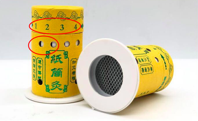 设计上有个小心机,纸筒设计可以旋转,上面还刻数字调节,通过控制圆孔大小来掌握艾灸温度。