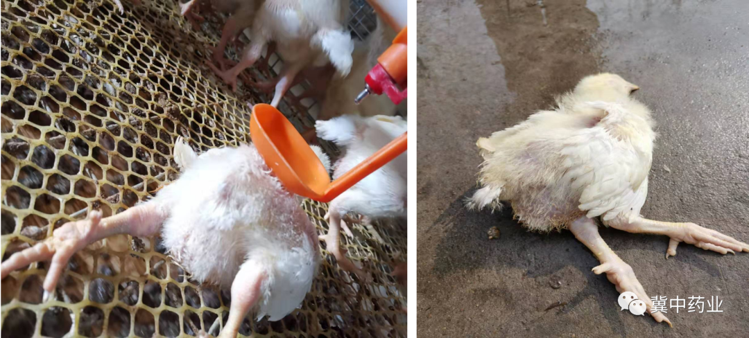 发病初期吃料积极性差粪便不成型鱼肠子粪便多,部分粪便有料渣而后出现粪便异常干燥呈鸟粪形状,小鸡体重变轻爪脸苍白,颈部绒毛替换缓慢等临床症状,再严重点会出现勾料现象吃细料,大颗粒甩地上,严重者减料减水至1/2,此时混感,接着出现高死亡。