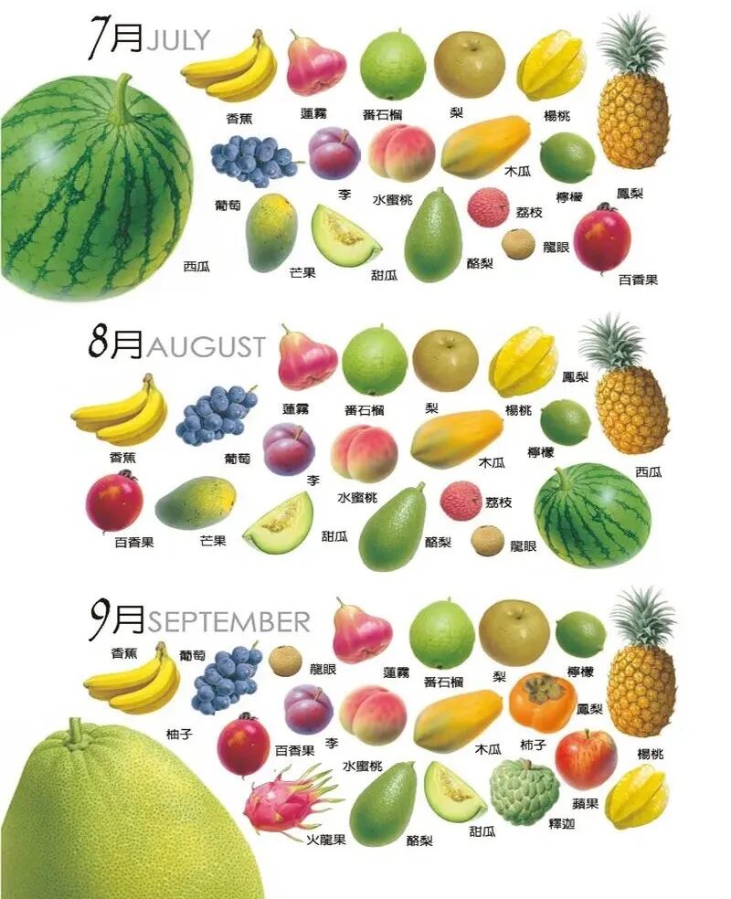 这个应季水果表是借用台湾地区的,南方的小伙伴可以参考,具体还要看你生活的地区哦!