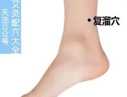 5、复溜穴:属于肾经,是双穴,左右对称,先找到内脚踝尖旁的太溪穴,太溪穴直上2寸,3个横指的距离就是复溜穴了;