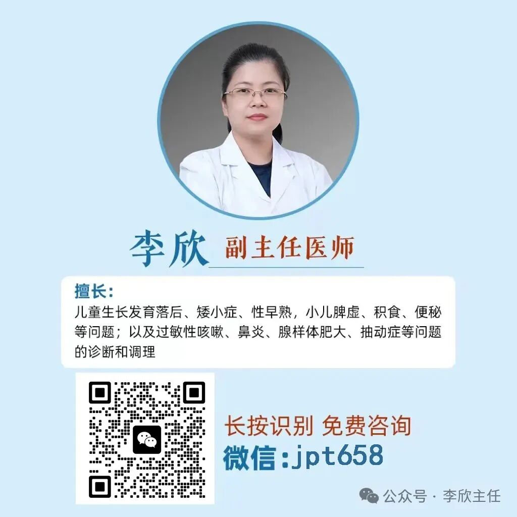 很多家长还不认识我,我是儿科副主任医生李欣,专攻儿童生长发育和身高管理十几年,擅长儿童积食、脾胃虚弱、身高落后、性早熟等问题。