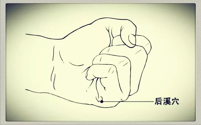 这一系列问题,都出于同一原因。现在,通过一个穴,也就可以全部解决,这个穴就是后溪穴。后溪是小肠经上的一个穴,把手握成拳,掌指关节后横纹的尽头就是该穴。