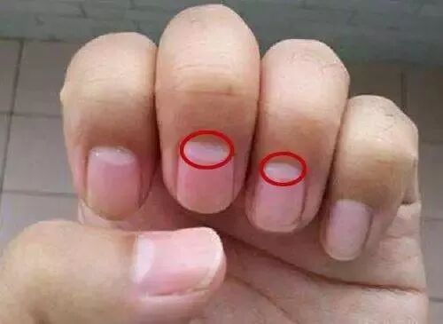 有的人多,两手的拇指、中指、示指,甚至无名指上都有,有的人仅是拇指上有。半月痕越多,代表着你的健康状况越好,一般6~8个都属于正常。而像我们刚才说的,有的人半月痕很少,就拇指上有一点点;还有一些人呢,连拇指上都没有,这说明一个什么问题呢?身体里的阳气不足,健康指数亟待提高。