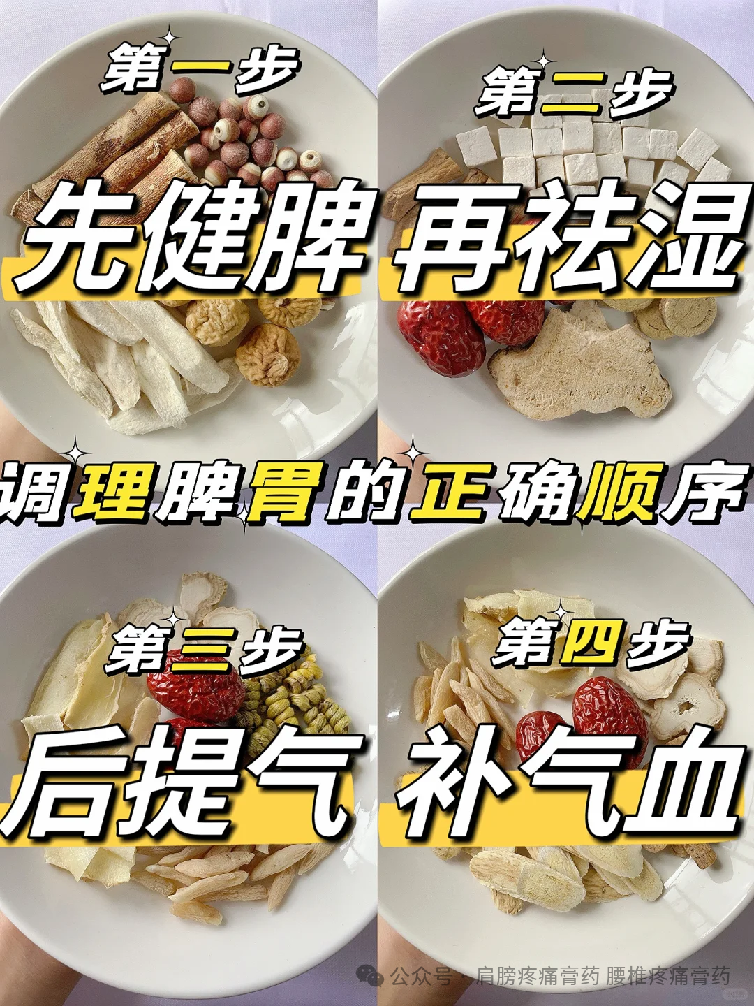 参苓白术散:含有人参、茯苓、白术、山药、白扁豆、莲子、薏苡仁、砂仁、桔梗、甘草等。以益气健脾、渗湿止泻为主,兼能补肺。方中人参、白术、茯苓益气健脾渗湿为君。配伍山药、莲子肉助君药以健脾益气,兼能止泻;白扁豆、薏苡仁助白术、茯苓以健脾渗湿,均为臣药。更用砂仁醒脾和胃,行气化湿;桔梗宣肺利气,以通调水道,又能载药上行,培土生金;甘草健脾和中,调和诸药,共为佐使。对于脾胃虚弱,湿气较重,伴有食欲不振、便溏泄泻、气短咳嗽等症状有较好效果。