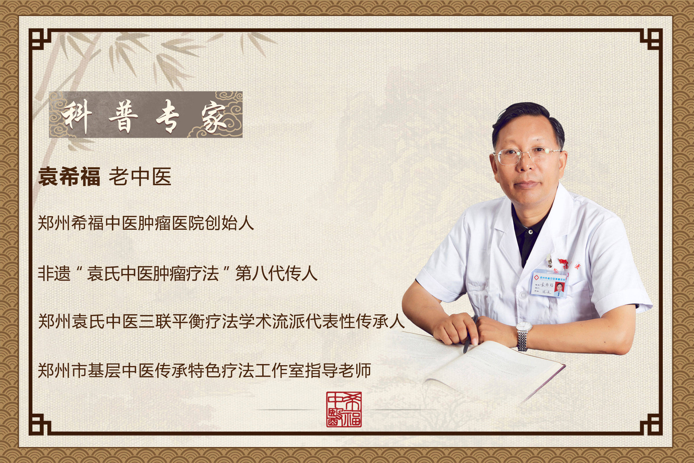 中医治疗与阴阳、五行相结合,在治疗时有较强的整体意识,注重对患者的气血、脉络、脏腑机能的调节,中医肿瘤专家袁希福,是郑州希福中医肿瘤医院院长,非物质文化遗产保护项目——袁氏中医肿瘤疗法传承人,郑州袁氏中医三联平衡疗法学术流派代表性传承人、郑州市基层中医传承特色疗法工作室项目首批唯一中医肿瘤专家,他出身于中医世家,承继家传百年《袁世医方》,从事中医临床工作40余年,期间运用中医药治疗食管癌、胃癌、肝癌、肺癌、脑瘤等常见恶性肿瘤,屡建硕果。并在多年的实践中积累了丰富的临床经验,可为早、中、晚期不同阶段的癌症患者提供中医系统治疗方案和健康指导,累计诊疗患者超20万人次。
