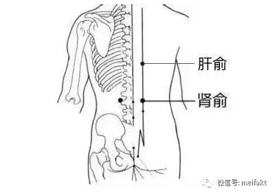 因为这两个穴位在背部,所以朋友们在按压这两个穴位时,最好采用正坐或俯卧的姿势取穴。用双手拇指指腹分别按压在脊柱两侧的肝俞穴(俯卧,从低头时最高隆起的骨头算起,第九个突起的骨头下方凹陷处,左右各两指处)或肾俞穴(在第十四椎(腰二椎)下凹窝左右向外各量1.5寸的地方,也就是找到第二腰椎后,延背正中线旁两指处)上,做旋转运动,由轻到重,以自己能承受为止。
