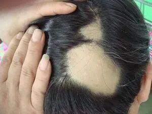 斑秃是以头皮突然出现圆形、椭圆形脱发为特征。第一个脱发区可以发生在人体的任何部位,但常见于头部。
