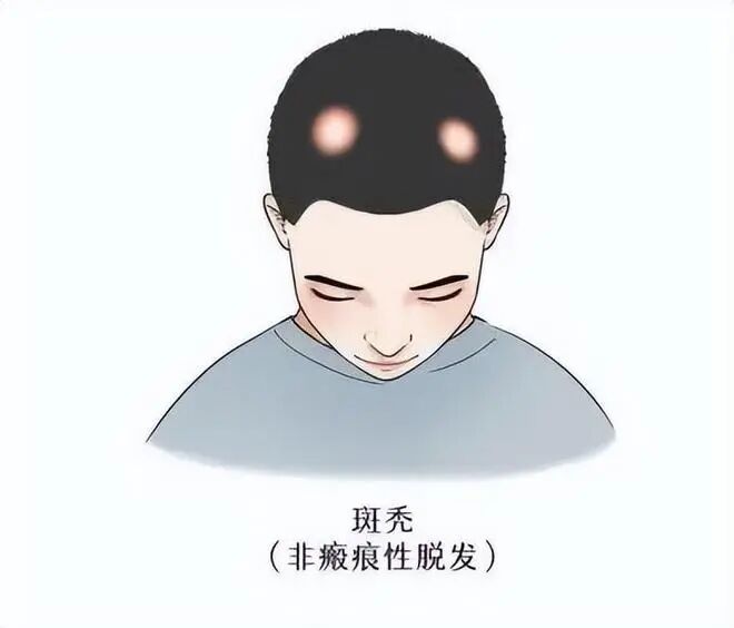 1. 圆形脱发区:最明显的特征是头皮或其他身体部位出现一个或多个圆形、光滑的脱发区。