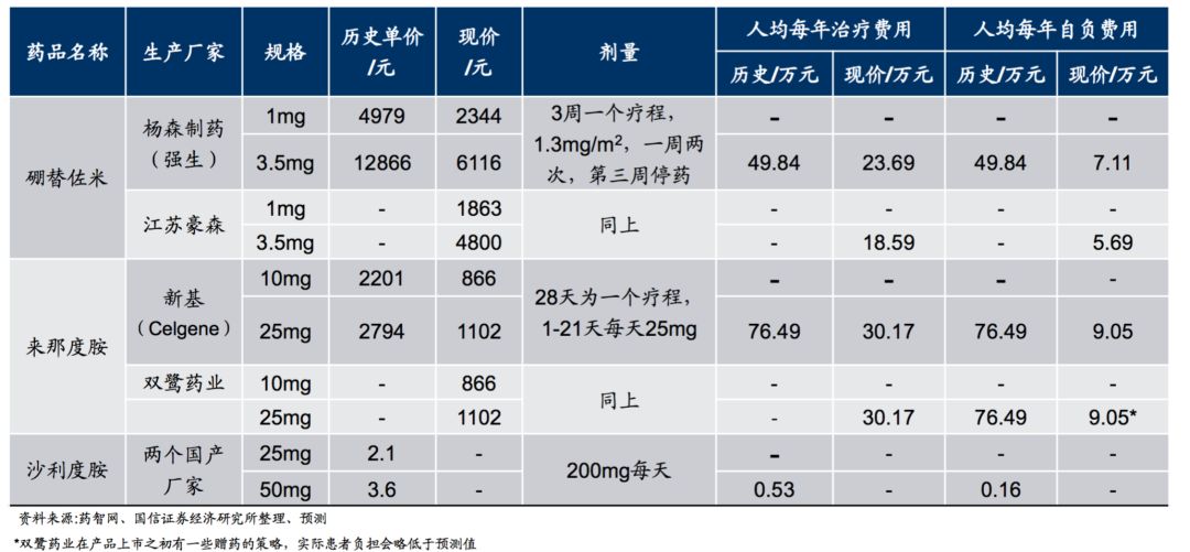 (1)纳入医保:2017年7月13日,人力资源和社会保障部将多发性骨髓瘤的重磅药物来那度胺、硼替佐米纳入国家医保目录乙类范围。