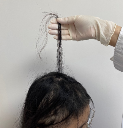 以拇指和食指拉起一束毛发,大约五六十根,轻轻向外拉,计数拉下的毛发数,>6根为阳性,表明有活动性脱发。进展期AA常为阳性,毛发根部呈杵状或锥形。