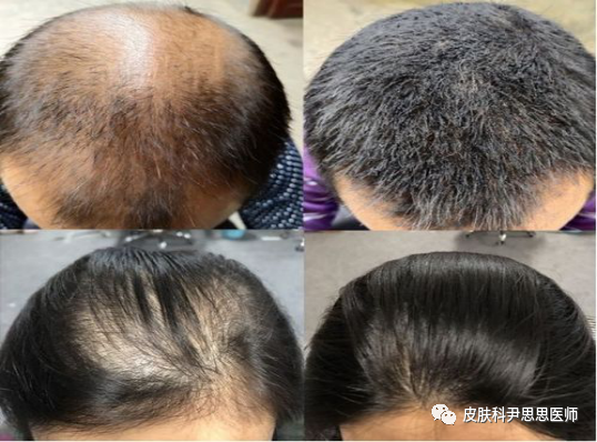 女性临床表现相对较轻,主要表现为头皮中央毛发进行性减少和变细,少部分表现为弥漫性头发变稀,前额发际线一般不受影响。而有少部分男性可以表现为女性型秃发,少部分女性也可表现为男性型秃发。