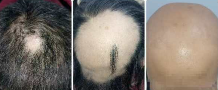 从左到右依次为:轻度、中度、重度斑秃
