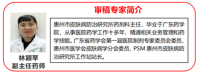 审稿:广东省药学会惠州市皮肤病防治研究所林颖苹