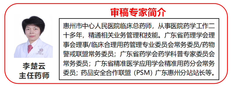 审稿:广东省药学会 惠州市中心人民医院 李楚云