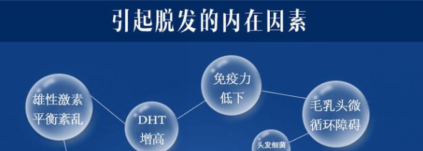 雄激素性脱发多发于青壮年,正值男人们拼搏事业、操心家庭的阶段,因此,人们便很容易将秃顶和用脑过度联系起来,误以为两者之间存在因果关系。仲华利主任解释,引起男性脱发最主要的原因是遗传因素,加上DHT(双氢睾酮)的作用。有一部分男性携带有脱发基因,这会让他们的毛囊对雄激素更为敏感,因此,大约有1/4的中国男性会在进入中年后逐渐秃顶。
