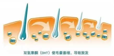 仲华利主任介绍,有90%的人脱发都是因为——雄激素性脱发,乍一听这个名字有点陌生,其实他就是过去人们常说的溢脂性脱发、男性型脱发。以前人们不了解脱发的原因,曾错误地认为脱发就是头发出油过多导致的。实际上,头皮上的毛囊和皮脂腺都对雄激素敏感。进入青春期之后,男性雄激素分泌增多,皮脂腺在雄激素作用下会变得肥大,产生更多的油;而毛囊会在雄激素影响下变小,生出的头发变细变短,还没长到足够长就会掉,直至毛囊彻底罢工。在雄激素导致毛囊提前退休的过程中,前额、头顶和后脑勺上部的毛囊尤其敏感,于是就造成了秃顶的发生。
