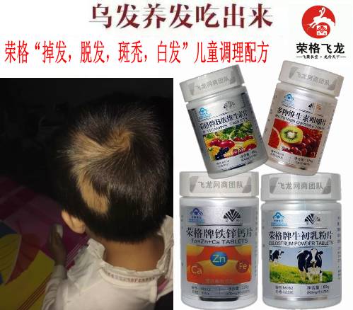 一女士,50岁左右,严重斑秃,用以上配方,头发全部长出来且能够长发披肩。一女士,严重脱发,用放大镜都找不到发根,整个头皮锃光瓦亮,用荣格长发六保险配方,非常成功的长出了头发。一般掉发用荣格钙加维生素D软胶囊、荣格B族维生素片、荣格血红素铁胶囊也能见效,儿童就用铁锌钙、B族、牛初乳。