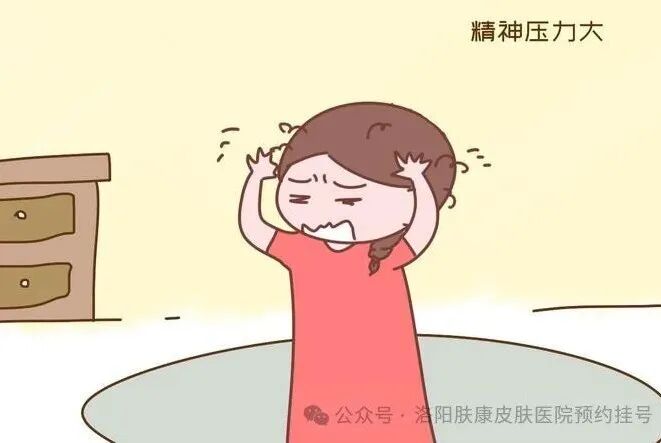 近期有重大事件发生、精神压力过大,情绪不稳定等,均可诱发斑秃的发生,除了进行常规治疗外,还需要调节心情、缓解压力。