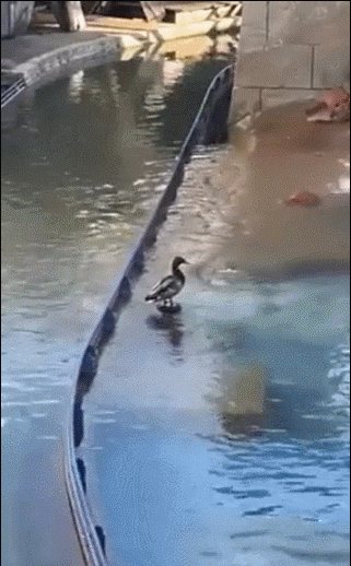 4.鸭子没想到喷泉突然喷了。@残酷的动物们