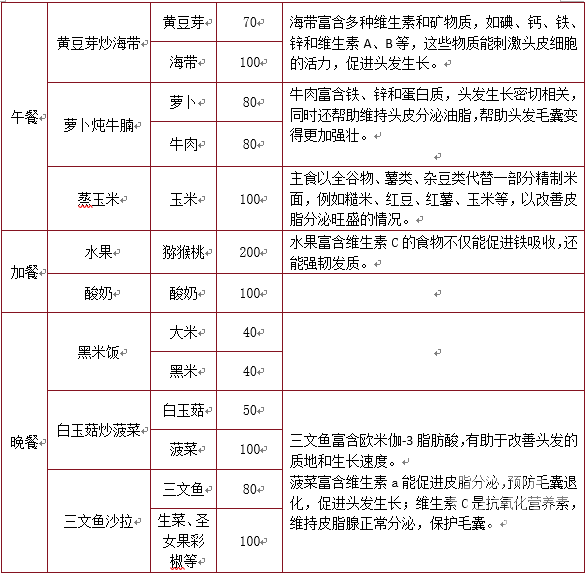 但不论什么原因,‘人是铁、饭是钢’,让自己吃饱吃好,各种营养都摄入到,头发才有足够的原材料好好生长。于晓医生根据自己多年的临床营养学经验,向大家推荐一份私家养发菜谱。