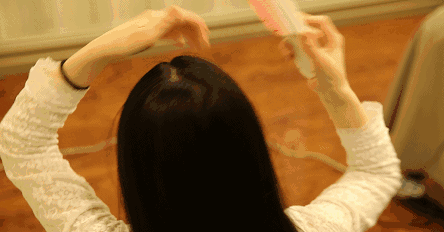 1、叉开手指插入到头发根部,手掌紧贴头顶,夹住头发,夹的不要太松也不要用力拉扯,然后慢慢地往外轻捋头发,连续做6~8次。(可以在不同的区域反复试验几次)