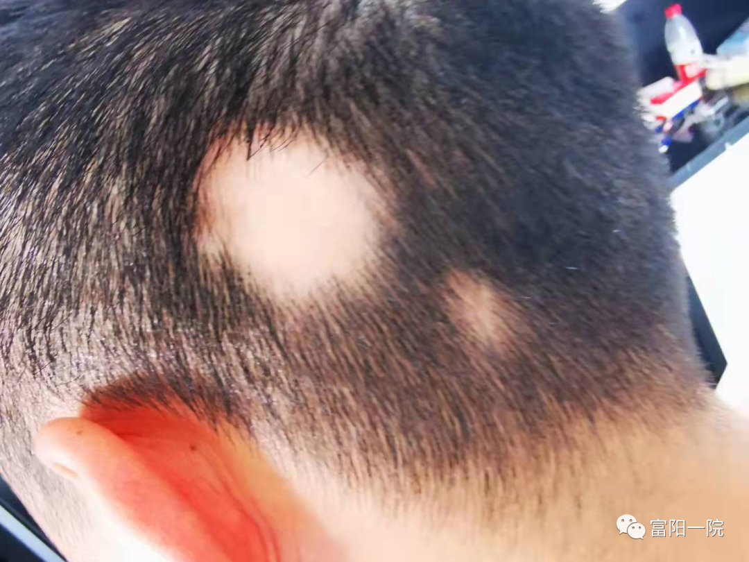 近期,柴先生,89年出生的,也因此困扰来我院皮肤科就诊,自诉近段因为工作关系,紧张焦虑,睡眠差,忽然发现自己后脑勺上,似乎有两块头皮,露出来了,柴先生向医生询问:难道这就是斑秃?