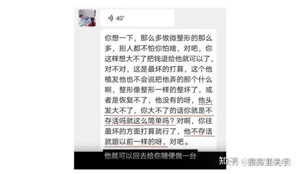 再一个,有关毛囊存活率这种事情其实是比较虚的。即便是植发结束后,存活率没有那么高,如何举证就是一个非常困难的事情。在这种事情上,很难说得清。甚至有无良培训机构的人会教怎么应对!