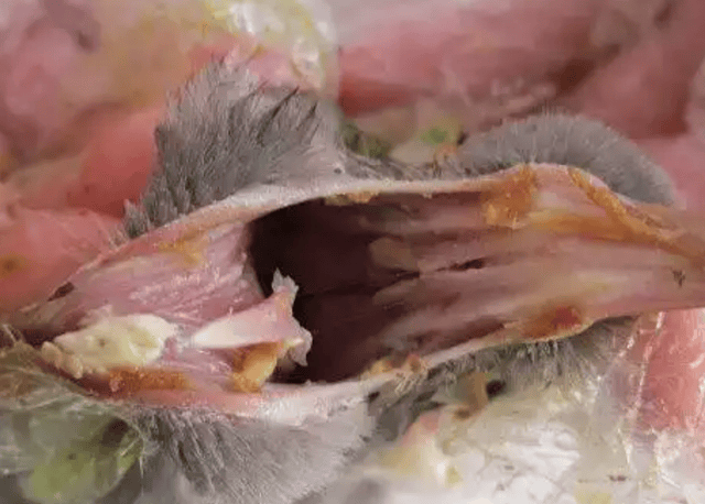 2.曲霉菌病(优先排序 2) 关键症状:无流鼻涕,迅速消瘦;环境可能有霉味 剖检特征:肺部有结节。防治方案:冠军小鸟均安+念滴安。