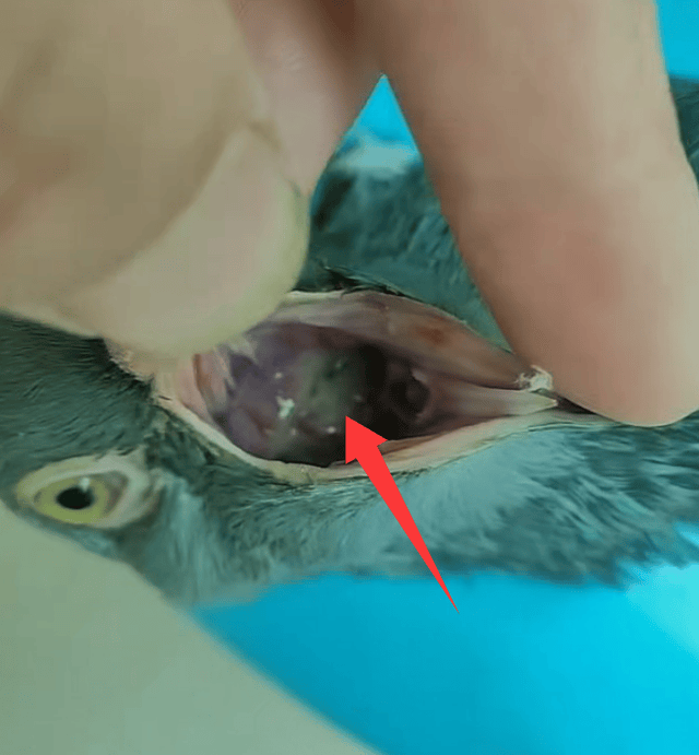 2. 掰开鸽子口腔,口腔黏膜发红或者红肿,有口腔粘液形成拉丝;