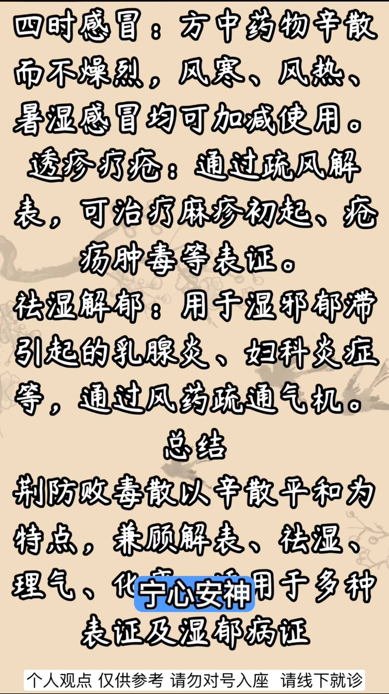 祛湿解郁:用于湿邪郁滞引起的乳腺炎、妇科炎症等,通过风药疏通气机。