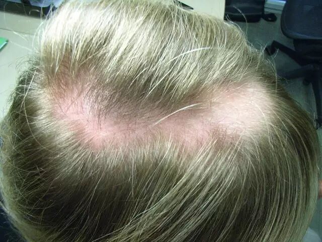 所谓假性斑秃,顾名思义,就不是真正的斑秃,只是外观上像斑秃,它实际上是炎症后引起的瘢痕性脱发,又称萎缩性脱发。这两种疾病虽然外观相似,后果却截然不同。假性斑秃的毛囊已经闭合,属于永久性脱发,再也无法长出头发。但是斑秃只是暂时性脱发,毛囊还是健康的,因此还可以再长出头发。