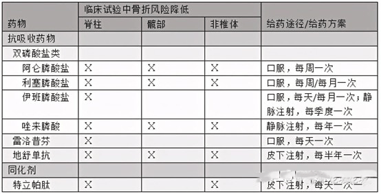 (3)双磷酸盐类可有效减少新椎体骨折和髋部骨折发生率。