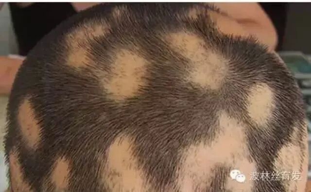 症状:骤然发生头发成片状脱落,俗称鬼剃头。原因:精神紧张或是创伤压力。内治︰脱发:头皮湿润不乾、发根受湿侵蚀、根腐则发落、抱木茯神600、研细末、每服6,日三次。【临证用药经验181】脱发:当归25、川芎12、生地15、桑叶50、紫草30、丹皮15。白酒浸补骨脂、侧柏叶外涂。桑叶善疗面之热,顾用量50。【竺有泉医疗经验103】外治:敷药法材料:制川乌1两、米醋1瓶。用法:将川乌研成末,取适量药粉加米醋调成糊状,敷药于患处,1次20分钟,1日1次。涂药法1材料:生姜1根。用法:把生姜切成薄片,烤热后反覆涂于患处,1次10分钟,1日1次。涂药法2材料:诃子5钱、山奈5钱、桂枝5钱、青皮5钱、樟脑3钱、米酒500cc。用法:将全部药材浸泡于米酒中,1个月后取酒酊涂抹患处,1日4次。秃发--人参叶一两煎洗患处,治疗脱发、斑秃犹在生姜、猪胆汁之上。【柯与参医疗经验荟萃63】