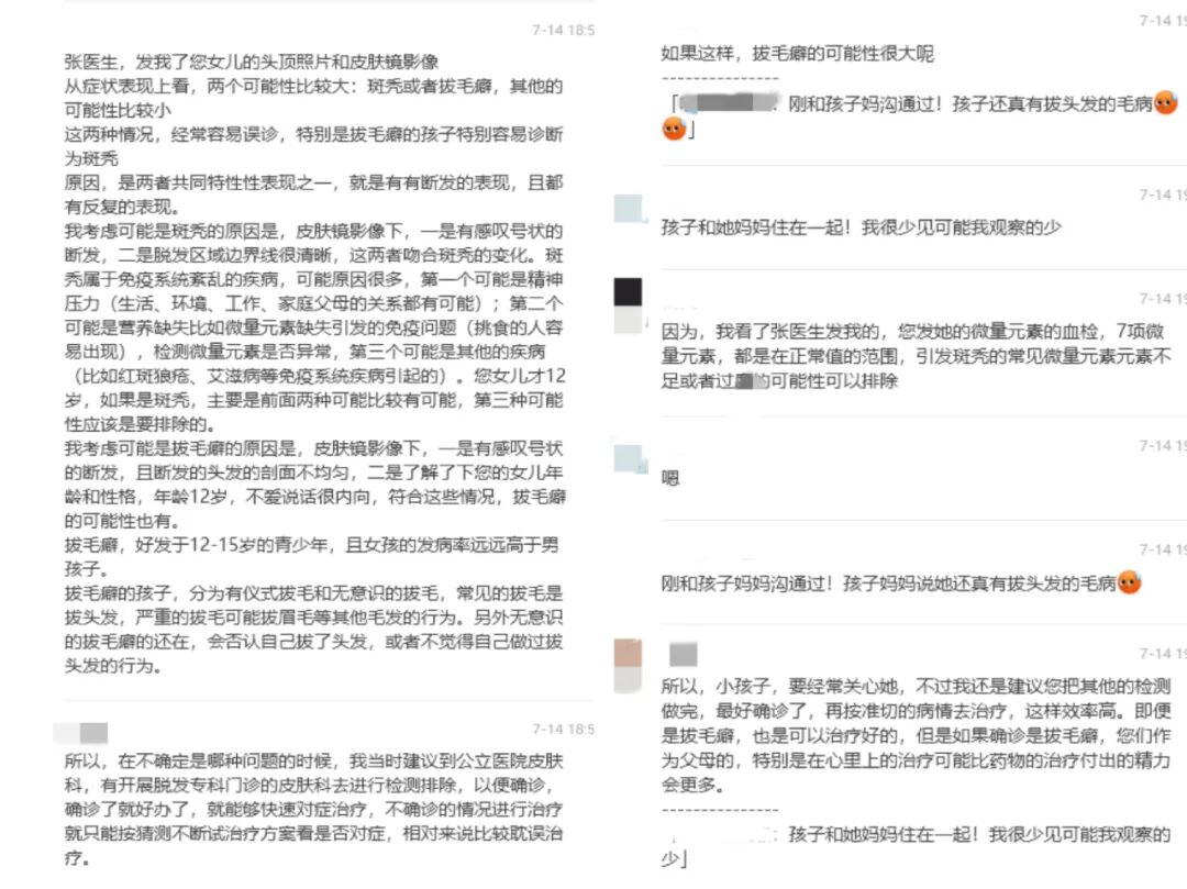 于是丝科慕专业人员建议家长做完剩下的检测,如果确诊是拔毛癖,最好先解决完精神心理问题,再来管理脱发问题。