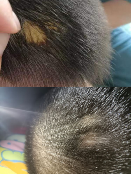 宝妈刚开始就抱着试试的心态给宝宝用了补肾生发膏,宝宝头皮裸露的地方开始长出细碎的头发,没过多久斑秃的头皮就看不到了,这可把宝妈高兴坏了,没想到这个膏方这么管用,心里特别感谢南主任。