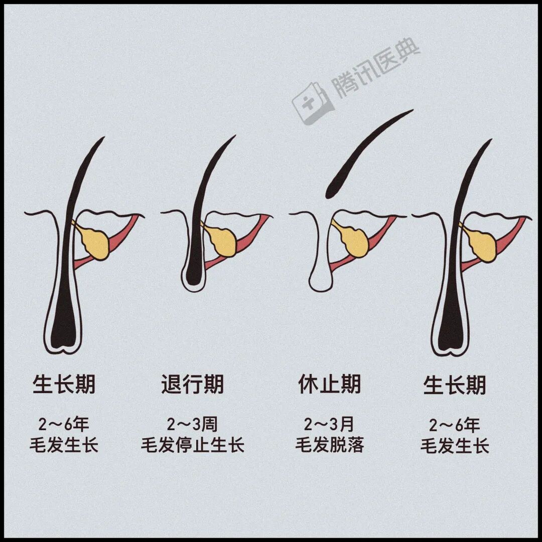 正常人休止期和生长期会保持一个微妙的平衡,从生到长,再到脱落,周而复始。