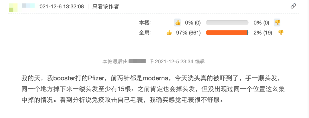 已经接种疫苗三周了,头发从根部大把的脱落,感觉要秃了。