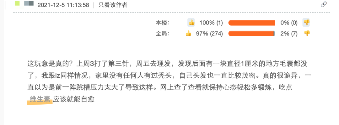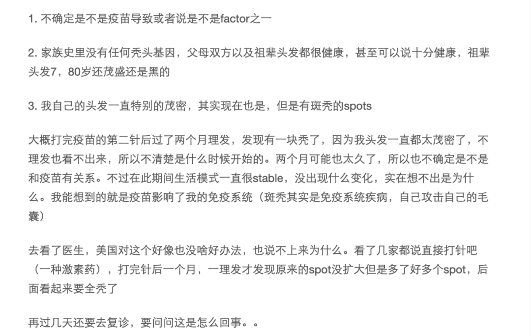 虽说不少人在接种疫苗后出现了脱发,甚至是斑秃的症状,