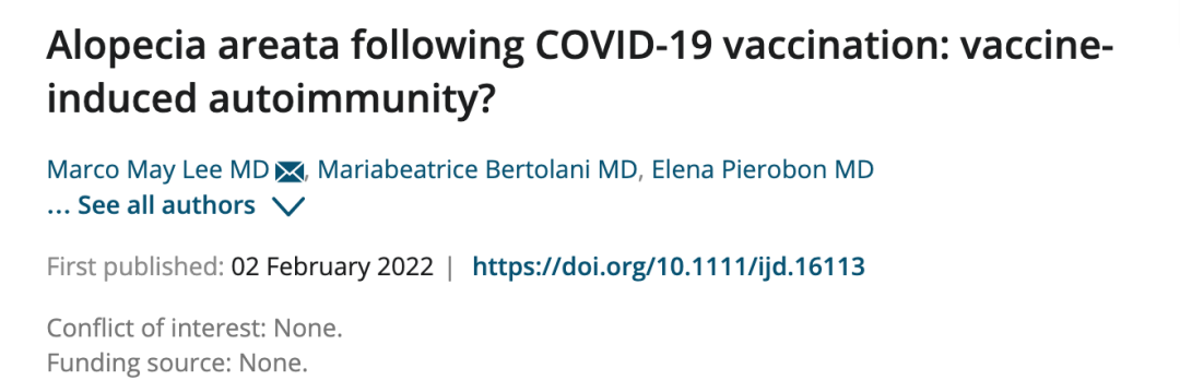 该男子自己和家人都没有脱发史,但在接种了第一剂辉瑞疫苗7天后,
