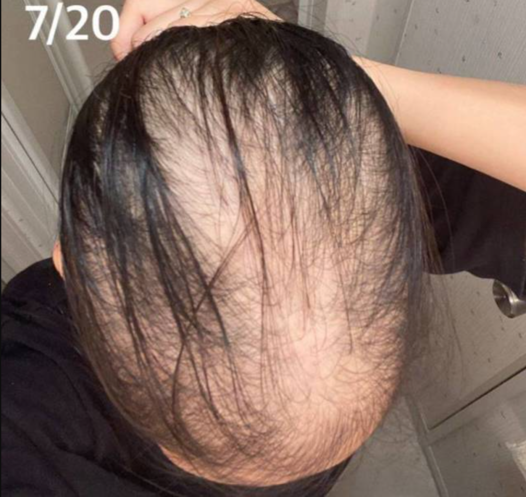 到了7月末情况更加严重,全头几乎已经不剩什么头发。