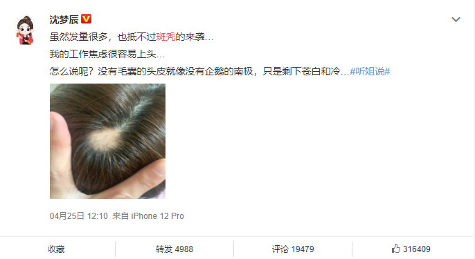 看完除了感叹一句美女好惨之外,我也开始慌了...即便保养如女明星也会秃头的烦恼,更何况我等凡人乎?