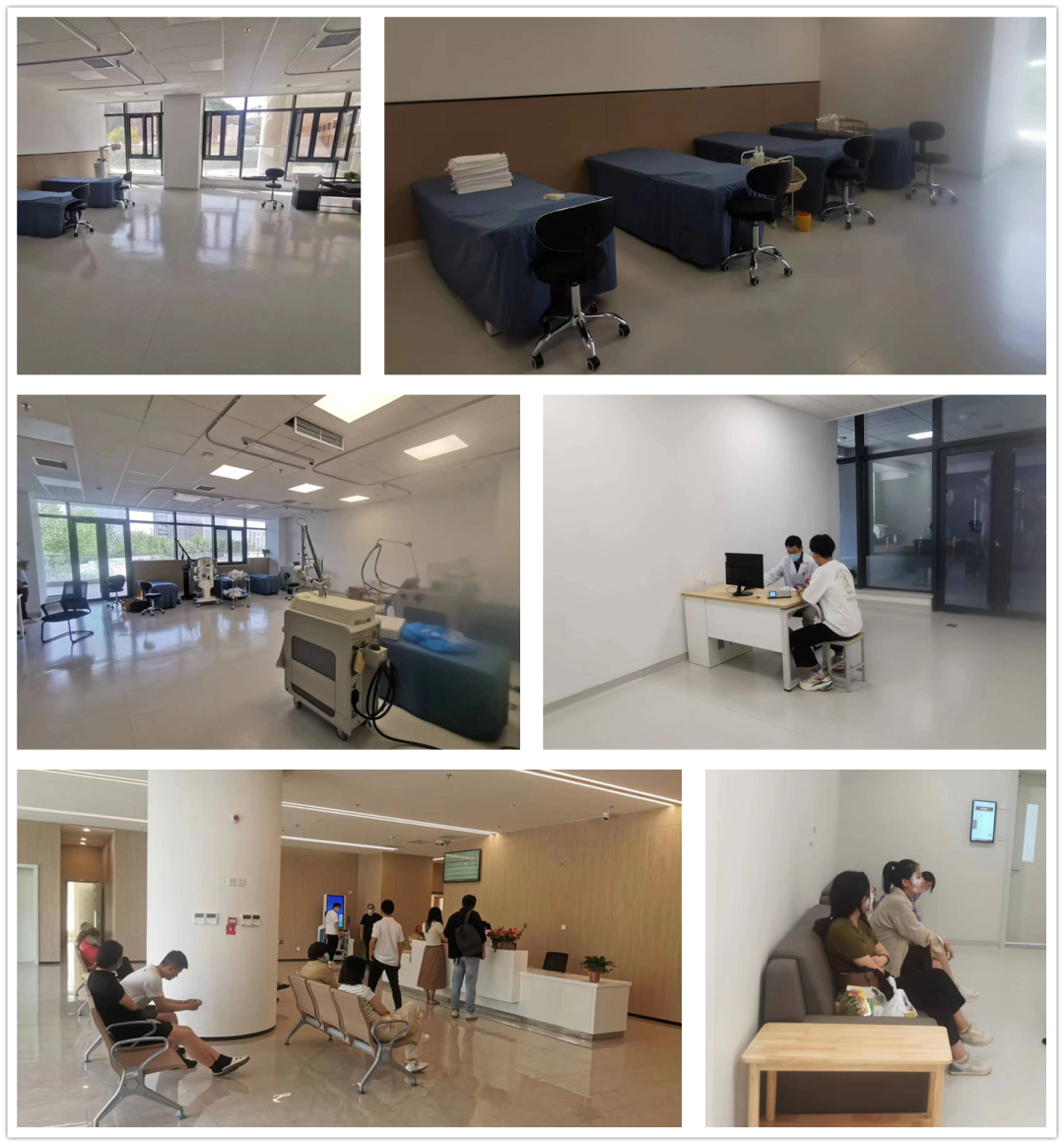 医美中心位于济南市中心医院东院区1号楼东侧,为独立区域,共三层,面积2400平方米。环境整洁优雅,按照门诊区、治疗区、手术区等功能进行区域划分:一层为门诊区域,设有医美门诊、整形门诊,以及皮肤影像检查室、治疗室等;二层为医美治疗区域,设有激光治疗室、注射治疗室、毛发治疗室、果酸治疗室等;三层为手术区域,设有手术室、烧伤/创面/瘢痕诊室和创面、瘢痕治疗室等。